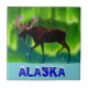 An ever so slightly stylized image of a moose silhouetted against the Northern Lights.