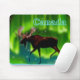 An ever so slightly stylized image of a moose silhouetted against the Northern Lights. Text reading "Canada" appears in glowing blue and white.