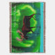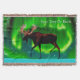 An ever so slightly stylized image of a moose silhouetted against the Northern Lights. Add your own text.