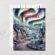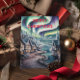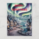 A quaint house painting with a stunning aurora borealis in the background, blending vibrant colors and a serene atmosphere.