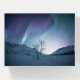 Landscape photo of green and purple Northern Lights (Aurora borealis) in North Norway, Scandinavia.