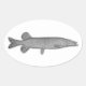 This oval freshwater fishing sticker features a vintage style northern pike icon. A top freshwater gamefish in North America, pike feed by executing lightning attacks on smaller fish and other food sources. This wary hunter is related to muskellunge and pickerel.