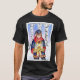 My 11 yo wore adult XL (5’7” 165#). The 8yo is small framed. She wore adult small and tied it in the back. Grandma wore adult large with long sleeve shirt underneath. Tall girl adult medium. Dark haired male adult large. Good quality dark Heather gray, Gildan brand shirt. -it was next up from basic choice and cost about $20 per shirt. Not too thick or thin. Washed and dried well, no major shrinkage. Not see-through. Can wear a bra under it fine. Screen print is just as shown and well done, front and back.
