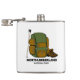 Well made flask, a little better than I had expected. Flask came in clear plastic box which gave it a nice presentation when I took it out of the zazzle packaging. Image is not printed on flask but on sticker. Don't know how this will hold up I haven't used it yet. This would make a Great gift! I plan to purchase more for friends! Cheers. I thought a little brighter than computer. Very crisp, writing wasn't
