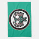 Get your kitchen this cool kitchen towel with a great Haida art Thunderbird. The background is a sea green.