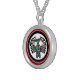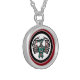Gift your friend this stylish round pendant necklace with a beautiful Haida Thunderbird from British Columbia, Canada. The background is a deep red.