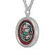 Gift your friend this stylish round necklace with a beautiful Otter chasing Salmon from British Columbia, Canada. The background is a deep red.