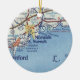 Norwalk CT Christmas ornament made with vintage map from the 1950's, before interstate highways.