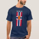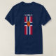 Stylized flag of Norway with the coat of arms superimposed and the name of the country on top - in Norwegian.