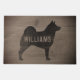 Shabby Chic Norwegian Elkhound Silhouette Rustic Style Welcome Mat. This cute doormat can be personalized with your family name or slogan. Faux weathered wood design. Makes a fun gift for new home owners, newlyweds, dog dads, dog moms, and anyone who loves their pets like family. Visit Jenn's Doodle World for even more dog breed doormats and Elkie lover’s home decor.
