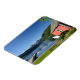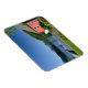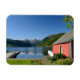 Rectangular photo magnet with a view over the fjord Hardangerfjord with some mountains and a red boathouse from Ulvik, Hordaland, Norway.