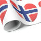 Specialty gift wrap with flag of Norway in heart-shaped design for Norwegians and other Scandinavians.