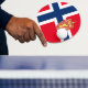 Flag and Coat of arms of Norway, classic patriotic pattern