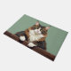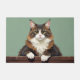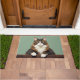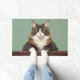 The soft forest green background enhances its woodland origins, creating a calm and earthy look perfect for welcoming entryways. Designed with extra space at the top and bottom, it allows easy personalization with names, welcome messages, or custom text—making it ideal for unique cat-themed doormats and thoughtful gifts.