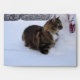 norwegian forest cat in snow envelope