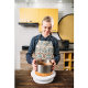 This apron is customizable. You can easily add a family name, a favorite cooking motto, or a charming phrase. Popular text options include "Baked with Love," "The Smith Kitchen," or "Hygge & Chill."