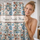This shower curtain is customizable. You can easily add a family name, a special quote, or a personalized message to the design. Popular text options include "Bathe & Bloom," "Our Happy Place," or a simple phrase like "Relax."
