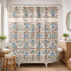 Transform your bathroom into a cozy, rustic retreat with a custom shower curtain featuring your beautiful Norwegian Garden design. This curtain is a large piece of functional folk art, instantly elevating your bathroom décor. The durable, water-resistant fabric showcases the vibrant floral pattern, bringing a unique touch of Scandinavian warmth and charm to your daily routine.