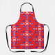 Great color and even though I ordered the kid size, it covers well enough to use during the holidays. I am not a big woman and prefer a shorter apron. I stand 5"6" and the length of the garment goes to mid-thigh. The tie straps fit well at my waist and even though there is no neck strap adjustment, the opening is plenty big enough. I am happy with the size and fit. I am sharing my apron with my 10 year old grandson, too! The color is vibrant and looks good, as shown on the website. The stitching looks strong and reinforced. Photographed is front side and back side of the apron, reinforced straps and coloring. My phone camera may not be the best at showing the details.