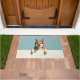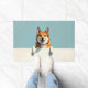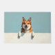 The soft fjord blue background adds a cool and refreshing touch inspired by its Nordic origins, perfect for welcoming entryways. Designed with extra space at the top and bottom, it allows easy personalization with names, welcome messages, or custom text—making it ideal for unique dog-themed doormats and thoughtful gifts.