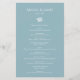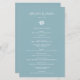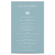 This wedding design is a perfect blend of elegance and classic styler. The main feature of the design is a small white flower motif that sits gracefully in the center of the dusty blue-colored background.