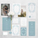 This wedding collection design is a perfect blend of elegance and classic style. The main feature of the design is a delicate floral motif that sits gracefully in the center of the dusty blue colored background.