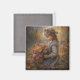 Capture the quiet, golden beauty of fall with this enchanting artwork of a young girl and a rustic bouquet, perfect for bringing a cozy, vintage feeling to your kitchen or office space. This square magnet features a soft, painterly image that evokes childhood memories, nature walks, and the nostalgic warmth of the harvest season. The rich, warm tones and soft focus create a beautiful piece of art that celebrates the beauty of autumn and the innocence of nature. It makes a charming, unique gift for lovers of cottagecore aesthetic, vintage art, or the autumn season.