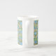 A chic Bone China Coffee or Tea Mug, with a nostalgic pattern of Bright Blue Morning Glory Flowers on a Taupe background . Part of the Posh & Painterly 'Morning Glory' collection. (This pattern will fit all of the mugs.)