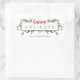 A fun, modern style with leaves and swirls in greens and rusty red, with a floral element and dots in rustic blue. Reads "happy HOLIDAYS" in an elegant font. Easy to personalize for use as gift tags, envelope seals, and more!