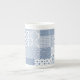 A pretty Bone China Coffee Mug, with a nostalgic Faux Patchwork of floral, check and polka dot patterns, in Indigo Blue and White. Part of the Posh and Painterly 'Indigo' collection. This pattern can easily be adjusted to fit any Mug.