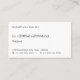 This traditional business card design features a professional’s name, a clinic or business name, a profession, and contact details that can be personalized. Business cards like these might be used by a professional such as a general practitioner or a family physician.