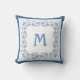 Nostalgic Monogram Indigo Floral Border Throw Pillow