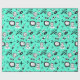 Birthday or Anniversary fifties themed gift wrap with graphics of vinyl albums, musical notes, a couple dancing, milkshakes, drive in sign, tvs hotdogs and other fun retro images. Black and white with a teal background.