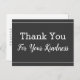 This vintage thank-you postcard design features the message "Thank You For Your Kindness" on the front, along with a customized message on the back. It could be used to show gratitude to somebody who has done something special.