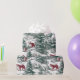 A snowy woodland scene in red and green toile features curious foxes, watchful owls, and fir trees dusted in snow. This vintage inspired Christmas wrapping paper brings a cozy forest feel to your holiday gifts with a touch of rustic charm.