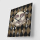 A nostalgic vintage steampunk fantasy man in the moon design with a harlequin checked background. In antique sepia tones.