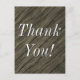 This old fashioned thank-you postcard design features the message "Thank You!" and a faux wood pattern background on the front, along with a customized message on the back. It could be used to show appreciation to somebody who has done something nice.