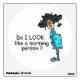 Stella in a blue polka dot nightgown asks "Do I LOOK like a morning person?"! If you're not a morning person you'll get a kick out of these funny morning attitude T-shirts, mugs, cards, stickers, bags, magnets, mousepads, pillows, keychains, and other items.