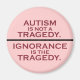 A very simple text only design. Autism is a disability; being an autistic person in a world "designed" for the non-autistic can be difficult...but autism is not a tragedy. Ignorance is the tragedy. Bigotry is the tragedy.