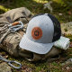 Custom Leather Patch Hat, Sytle: Adult Retro Trucker Cap, Color: Heather / Black, Shape: Circle