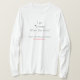 I love this shirt. I had written to the artist asking her if this picture was available on a shirt, and she wrote me back telling me where I could find the shirt. These shirts can be custom made to have a different saying. I loved this saying and went with it. The artist wrote me back later to tell me that she had seen my order go through. How's that for service? Pretty special. It's just as displayed. Perfect!
