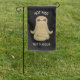 Flag bracket is super easy to assemble. There is a prong fork that goes into the ground. I dug a shallow hole to bury the prongs and still had enough height. Reinforced stitching on for the flag opening. Colors are true to the website. Mona Lisa's sign with the text is easy to read, the text is clear and not blurry.