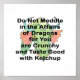 Do not meddle in the affairs of dragons, for you are crunchy and taste good with ketchup. A favorite saying among pagans and other people with a sense of humor and a love of dragons, also known as basilisk, hydra, tarragon, and wyverns. Available in many different colors. This version has a green dragon head with yellow eyes faded into the background.