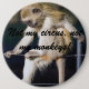 Giant button with image of a silly monkey posing on a fence with the slogan "Not my circus, not my monkeys".