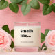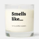 A scented candle features the saying: "Smells like...not my problem anymore." on the front. If giving as a gift, you can personalize this candle on the back (leave those areas blank, too if you don't want any printing.) Makes a fun gift or perfect for yourself.