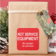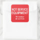 This is a sheet of six 3" x 3" NOT SERVICE EQUIPMENT sticker labels with Spanish subtitles. No equipo de servicio. It is for electricians to use to label equipment that is not being used for electric service.