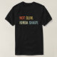 My 11 yo wore adult XL (5’7” 165#). The 8yo is small framed. She wore adult small and tied it in the back. Grandma wore adult large with long sleeve shirt underneath. Tall girl adult medium. Dark haired male adult large. Good quality dark Heather gray, Gildan brand shirt. -it was next up from basic choice and cost about $20 per shirt. Not too thick or thin. Washed and dried well, no major shrinkage. Not see-through. Can wear a bra under it fine. Screen print is just as shown and well done, front and back.