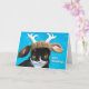 Funny Christmas Holiday Greeting Card with a black cat wearing reindeer antlers