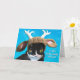 Funny Christmas Holiday Greeting Card with a black cat wearing reindeer antlers
