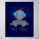 Vector cartoon illustration of a cute, but sad little robot with blue eyes sitting on the floor with Not Today text. Tags: robot, droid, android, machine, future, sad, upset, cute, humor, cartoon, grief, frown, depressed, depression, lonely, adorable, blue, gray, not, today, busy, procrastinate, lazy